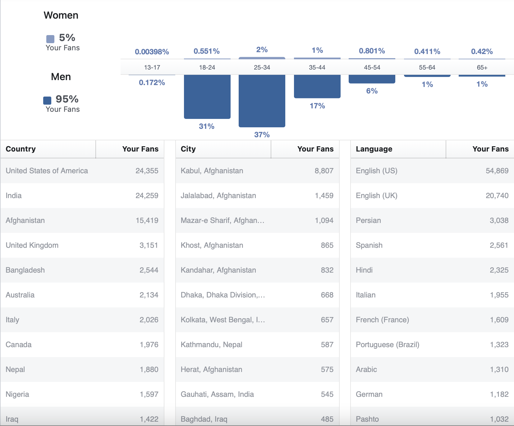 What I am saying is reflected in the demographics on our Facebook page... Look at the number of followers in Afghanistan. Sure, some are contractors and military dudes. But the bulk of it is actual Afghans...