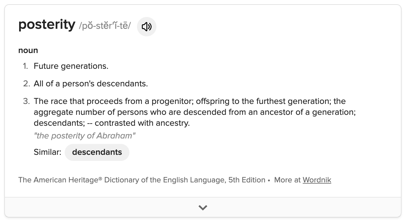 The term “posterity” is defined as follow: