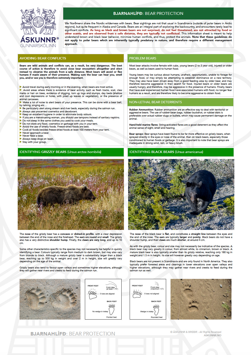 If the bear starts approaching you, DO NOT PLAY DEAD! Use your weapons to kill if available (we kindly refer to Hávamál verse 38). If not, you must fight the bear as hard as you can, with whatever you’ve got, aiming at the nose and eyes, with the clear goal to kill the beast!