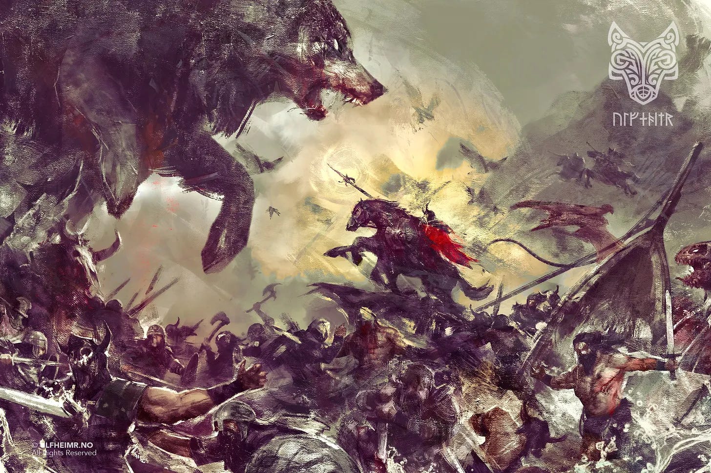 First, under the Skjǫldrinn covenant of 748, some of the absolute best warriors, whether or not they die in battle, including Úlfhéðnar and Berserkir under their command, join Týr at his hall, Valaskjálf (in Valhöll as well). Those don’t go to Glaðsheimr with Óðinn. Ever. No matter what. This is over some unresolved issues between Blendingar (hybrids, half man half jötunn) and Óðinn (who formed the world by killing one of their ancestors through deceit and dismembering him, and later plotted to drown all of their ancestors in blood), and the concern the hybrids would side with Jötnar during Ragnarøkr, not to mention seek some conflict with Óðinn. Backed up by all remaining Úlfhéðnar of course, and their Berserkir, due to the oath associated with membership in Skjǫldrinn, the ancestral military order. Í vegi jarðar. That is the way of things.